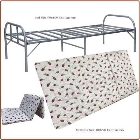 Folding Bed with Foam Folding Mattress Portable Single Folding Mattress Size 180x90 CM Steel Frame Size 90x190 Centimeters Model KFB896