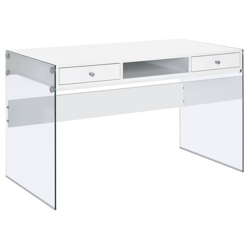 Target glass desk 2025, Dobrev 2 Drawer Writing Desk With Glass Base White High Gloss 2025