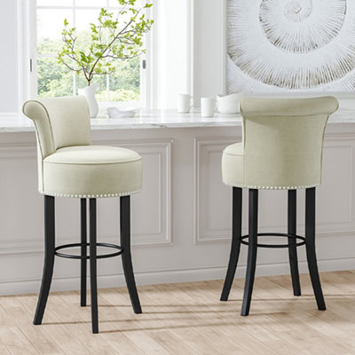 Livingandhome Bar Stools Set of 2 Beige Velvet Upholstered Low