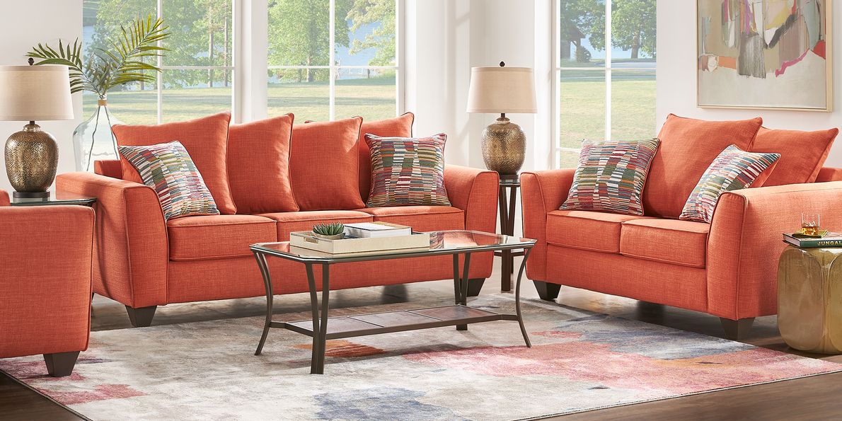 Primwell Place Orange 7 Pc Living Room with Gel Foam Sleeper Sofa