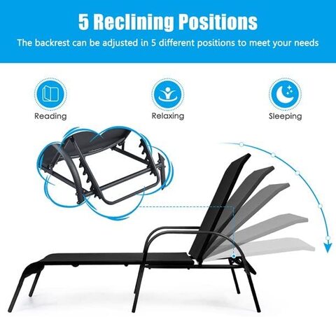 Buy Yulan Outdoor Adjustable Reclining Patio Chaise Lounge Gray