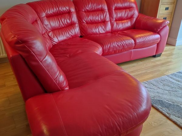 Beautiful Red Corner Real Leather Sofa For Sale. for sale in Co