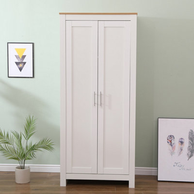 FurnitureHMD Wooden 2 Door Wardrobe Clothes Storage Unit with Shelves and Hanging Rail for Bedroom
