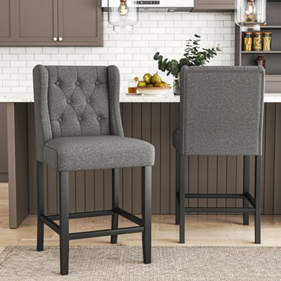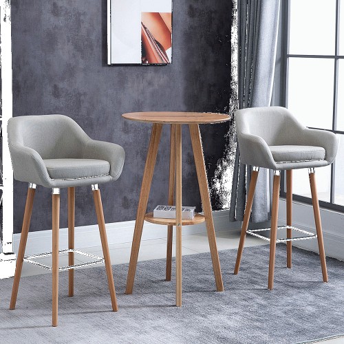 Livingandhome Bar Stools Set of 2 Grey Linen Upholstered Bar Stools