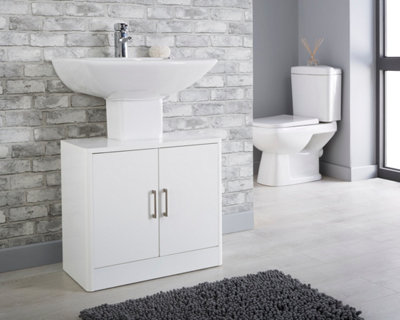 White Gloss 2 Door Bathroom Under Sink Basin Cabinet