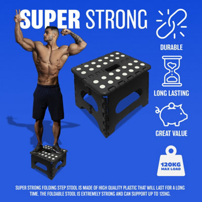 One Step Folding Plastic Stool Portable Fold Up Footstool for Kitchen Bathroom Toilet Caravan for Children Kids Adult Collapsible Non Slip