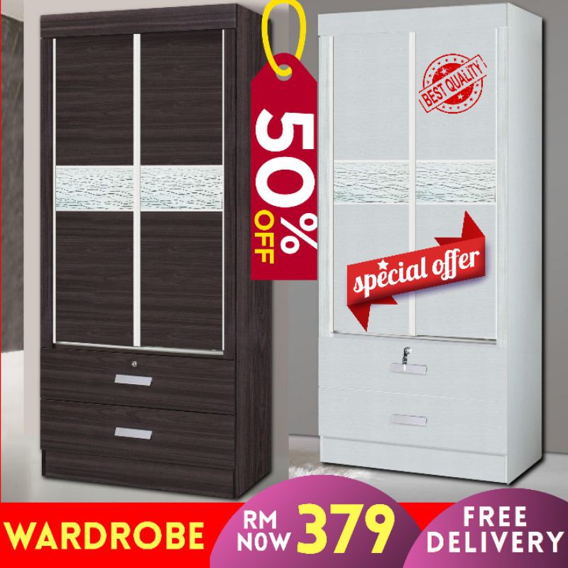 2 Door Modern Wardrobe for Single Person Almari Baju White Dark