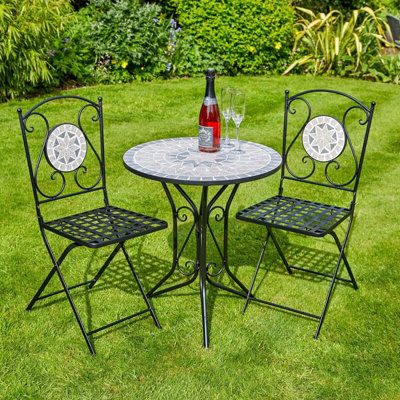 Home Source Athens Mosaic Outdoor Garden Patio Bistro Set Black