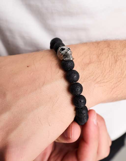 Steve Madden bead bracelet with skull charm in dark brown ASOS