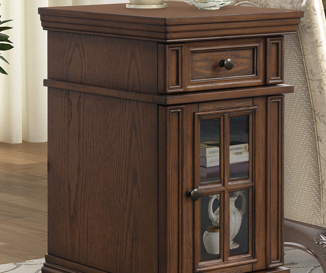 Brown Glass Door End Table with Charging Big Lots