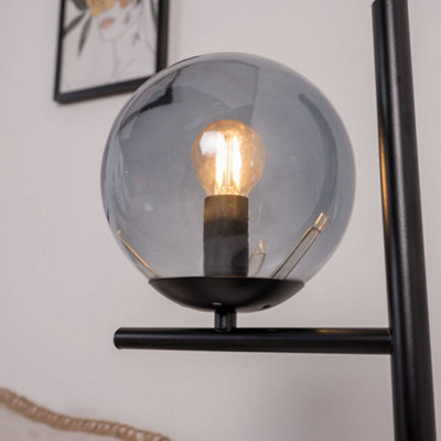 Glass shade bedside lamp 2025, ValueLights Industrial Style Matt Black Metal Bedside Table Lamp 2025