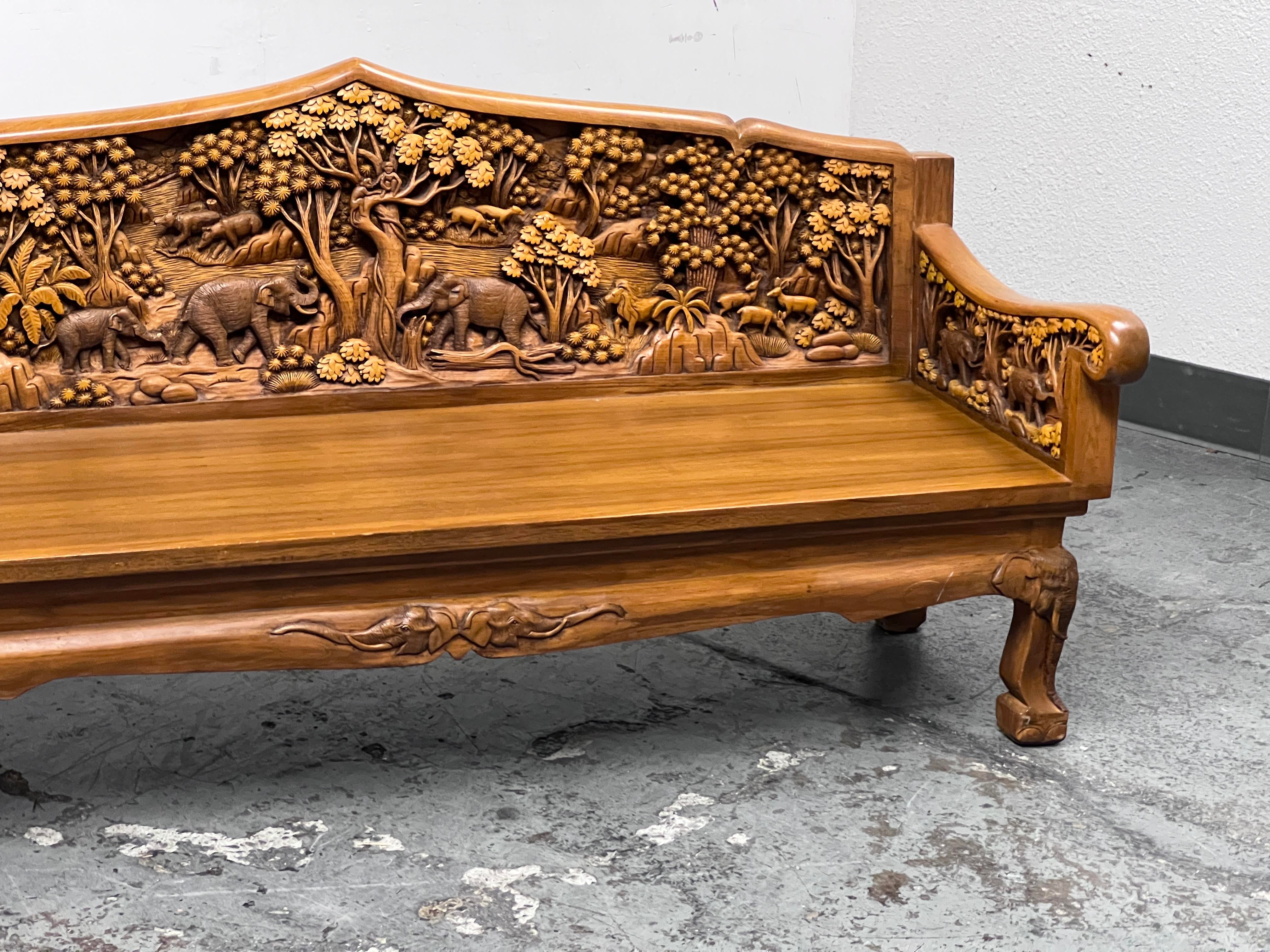 Vintage Bali Teak Wood Hand Carved Loveseat Sofa Bench