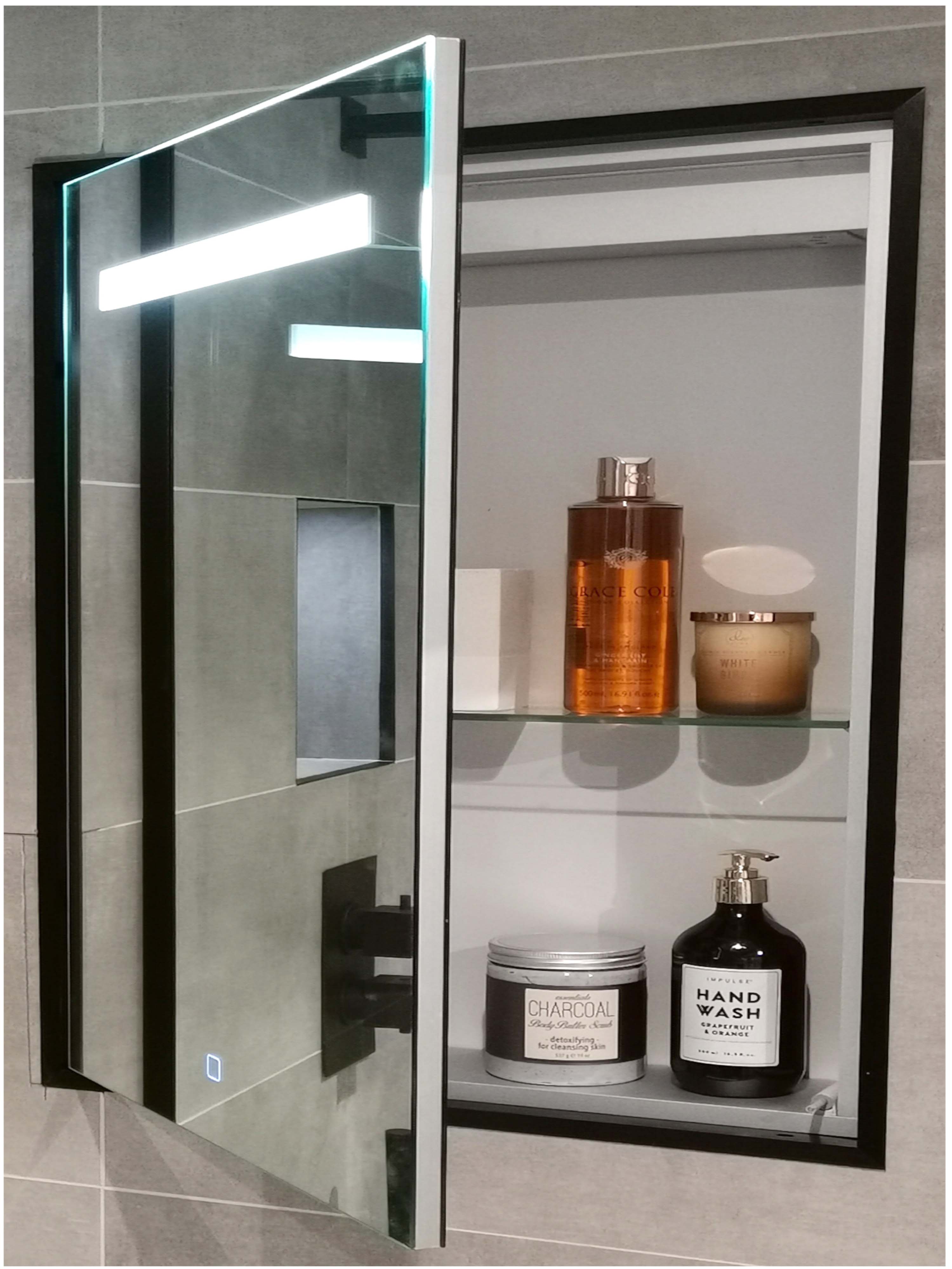 Abacus Melford Black Surround LED Recessed Mirror Cabinet with Integrated Shaver Socket 700 x 500mm
