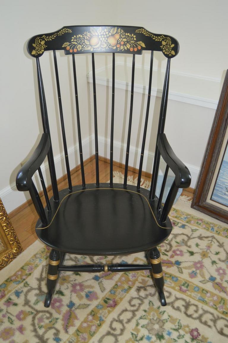 Nichols Stone Hitchcock Rocking Chair Rocker Black w Gold Harvest Stencil