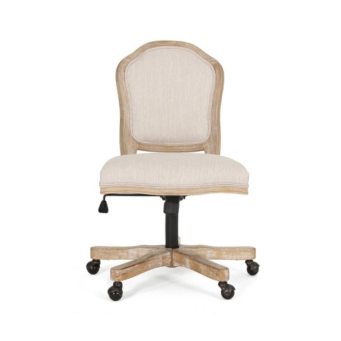 French country office chair 2025, GDF Studio McGillen French Country Upholstered Swivel Office Chair Beige Fabric and Natural 2025