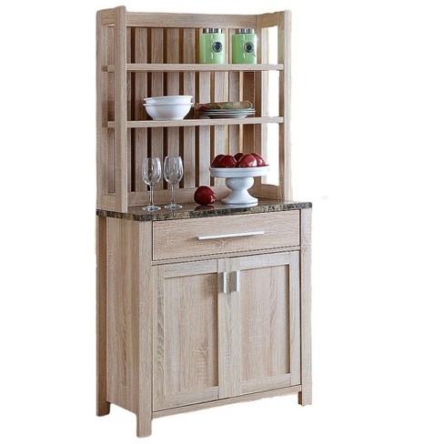 French Kitchen White Marble Bakers Rack with Hutch Reviews
