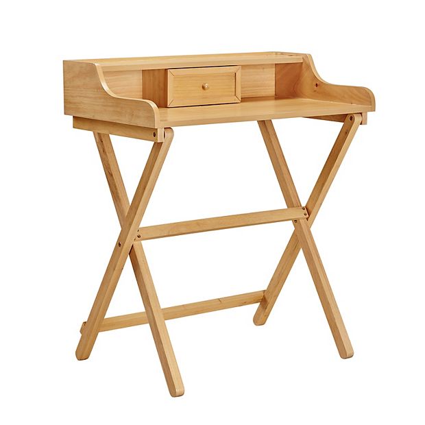 Linon Cade Wood Folding Desk in Natural Brown