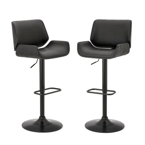 Set Of 2 Leatherette Adjustable Height Swivel Bar Stools Black