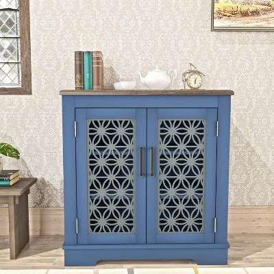 TREXM Modern Accent Cabinet Navy Blue Finally Home Furnishings LLC