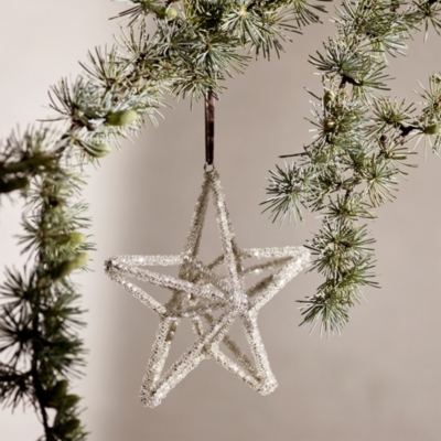 Silver Beaded Star Decoration Large Christmas Tree Decorations