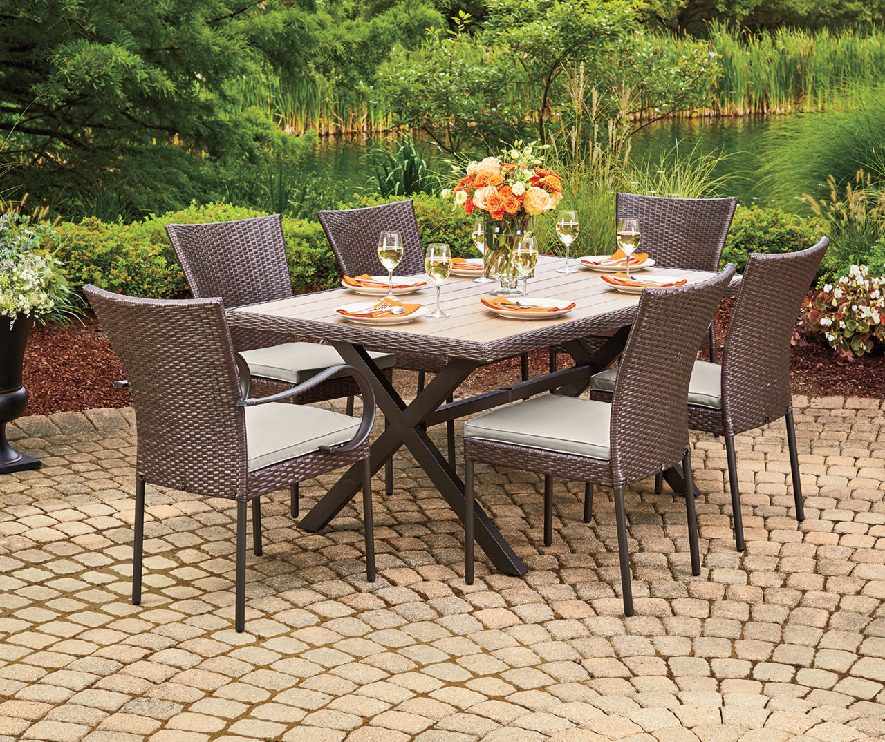 - faux wood outdoor dining table