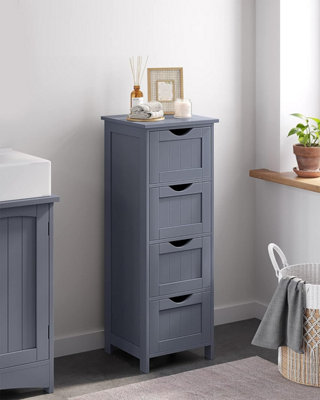 VASAGLE Bathroom Floor Storage Cabinet Slim Wooden Storage Unit with 4 Drawers 30 x 30 x 82 cm for Living Room Kitchen