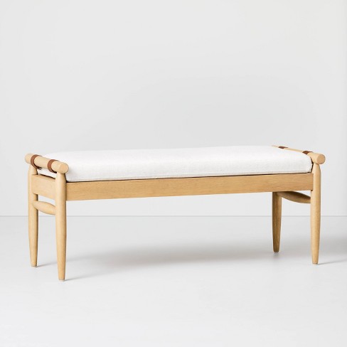 Upholstered Natural Wood Accent Bench Oatmeal Hearth Hand