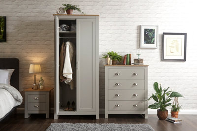 LPD Furniture Lancaster 3 Piece Oak Effect with Grey Finish Bedroom Furniture Set