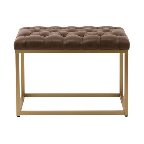 Trubeck Tufted Metal Base Ottoman Faux Leather Brown Threshold
