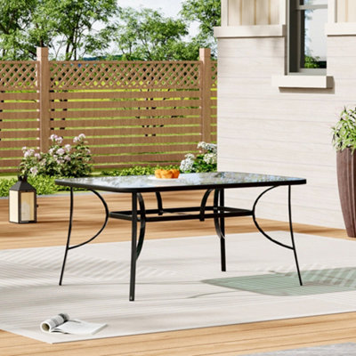 Black Rectangular Tempered Glass Tabletop Metal Outdoor Garden Coffee Table with Parasol Hole 120cm
