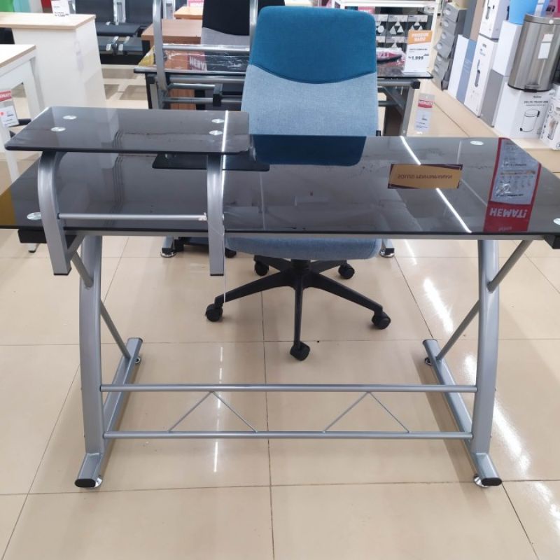 Hazel desk glass black meja komputer informa original
