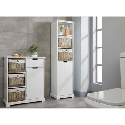Fully Assembled White Bathroom Tallboy Storage Unit with Willow