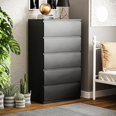Keaton Matt Black 5 Drawer Tower Freestanding Chest Of Drawers