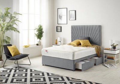 Somnior Plush Charcoal Platinum Sprung Memory Foam Divan Bed with 2 Drawers Same Side Headboard Small Double