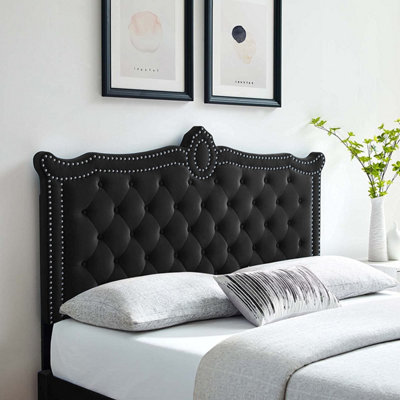 Black plush headboard 2025, Gemstone Upholstered Headboard D F Beds 2025