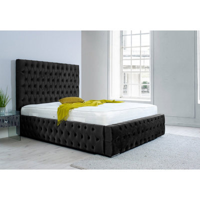 Orella Plush Bed Frame With Chesterfield Headboard Black