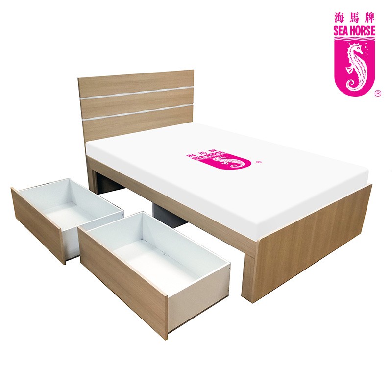 Seahorse queen size bed frame 2025, SEA HORSE Bed Frame with 2 Drawers in Wooden Color for Super 2025
