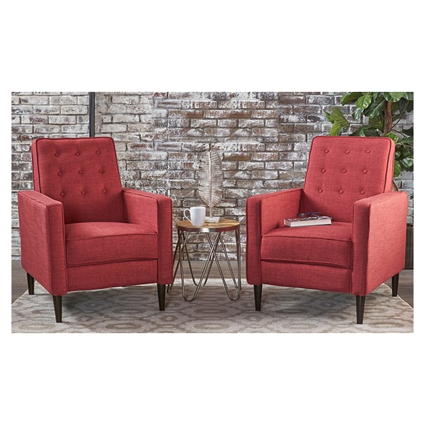 Mervynn Mid Century Fabric Recliner Club Chairs Set of 2 Red