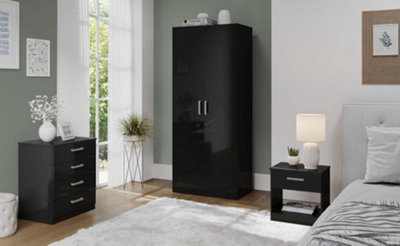Carlton High Gloss Bedroom Furniture 3PC Trio Set Black DIY at B Q