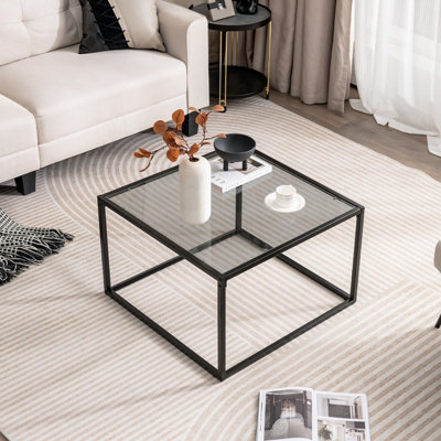 Costway Tempered Glass Top Coffee Table Home Square Tea Table Accent Sofa Side Table