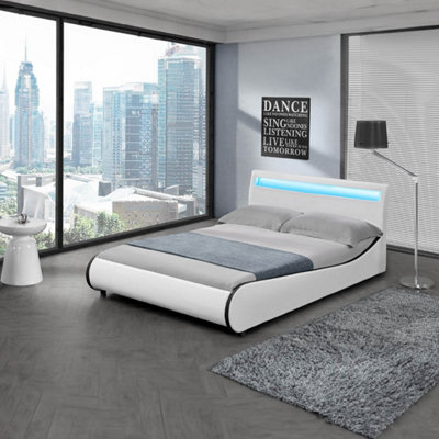 ORION LED LIGHTS HEADBOARD GAMING STYLE FAUX LEATHER SMALL DOUBLE BED FRAME White with Black