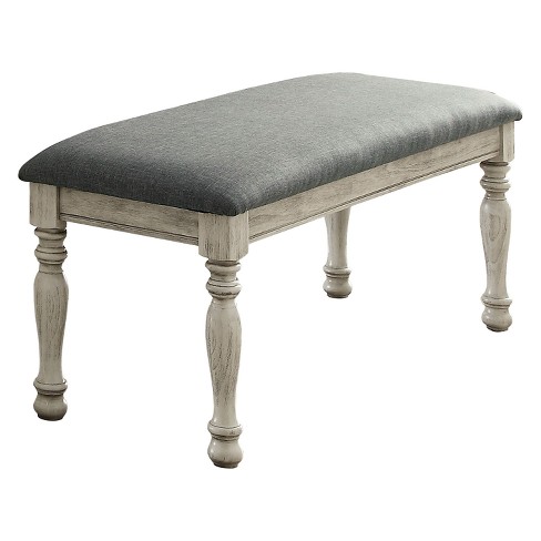 Natali Transitional Linen like Fabric Bench Antique White Homes