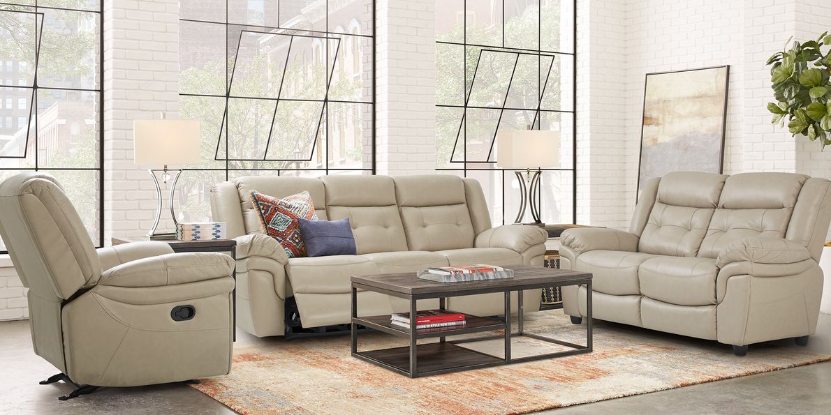 Ventoso sand leather reclining sofa 2025, Leather Living Room Sets Furniture Packages 2025