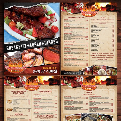 Design an eye catching menu for the tennessee grill bar