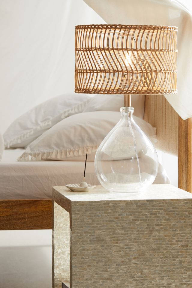 Adesso Cuba 23 in. Clear Glass and Rattan Teardrop Table Lamp 1543