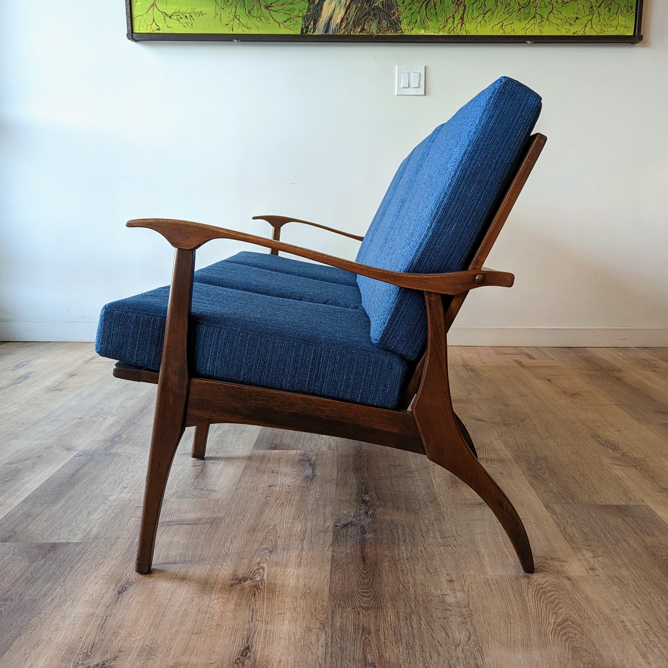 Mid 20th Century Newly Upholstered Walnut Mid Century Modern Sofa