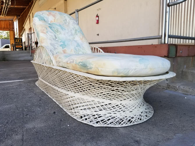 Vintage Russell Woodard Sculptura Metal Mesh Wrought Iron Chaise