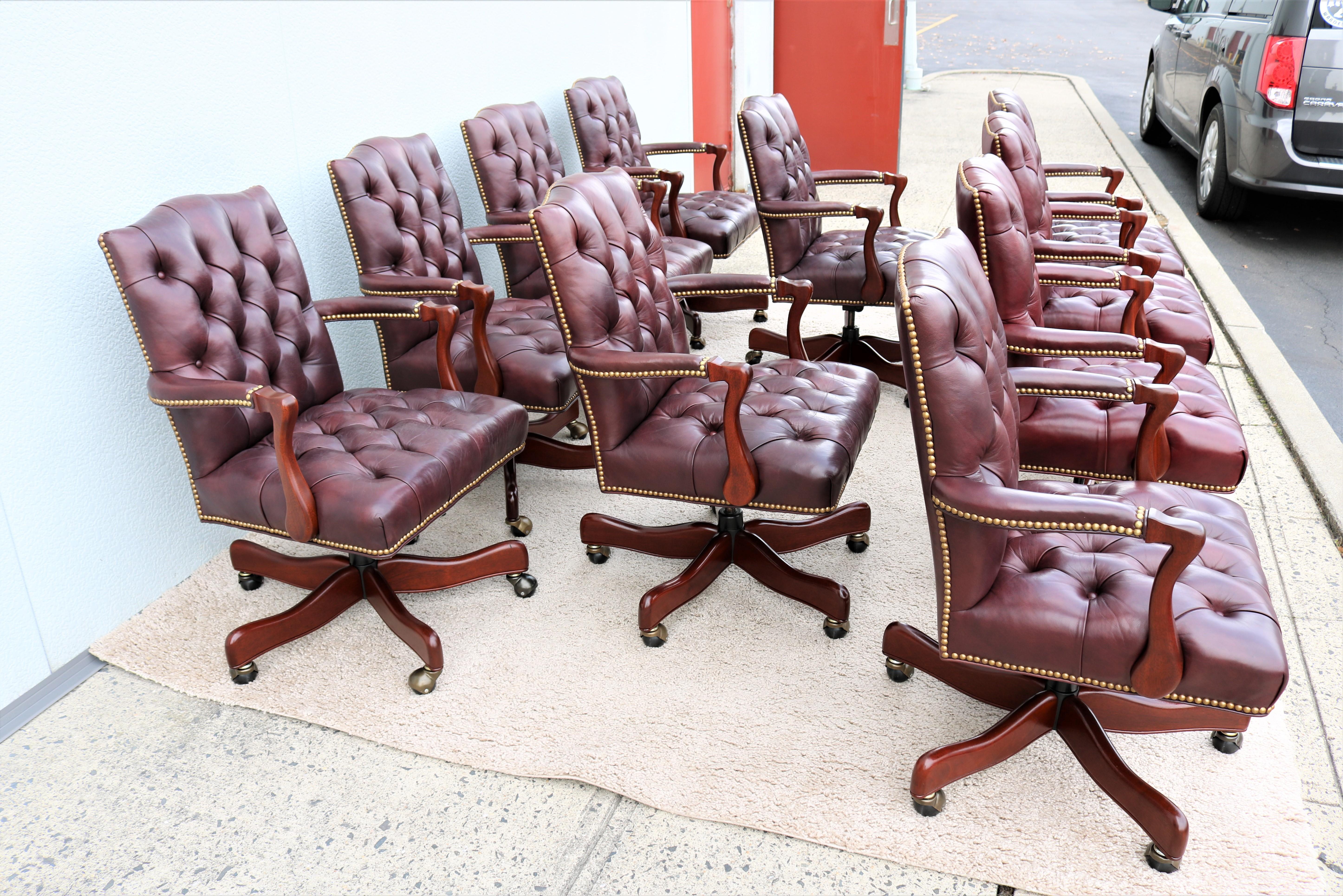 Burgundy leather desk chair 2025, Bespoke Pair English Handmade Leather Desk Chairs Burgundy eBay 2025