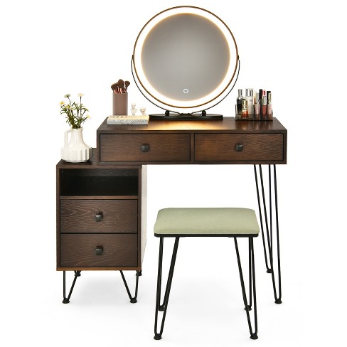 Tangkula Bedroom Makeup Vanity Dressing Table Stool Set With 3