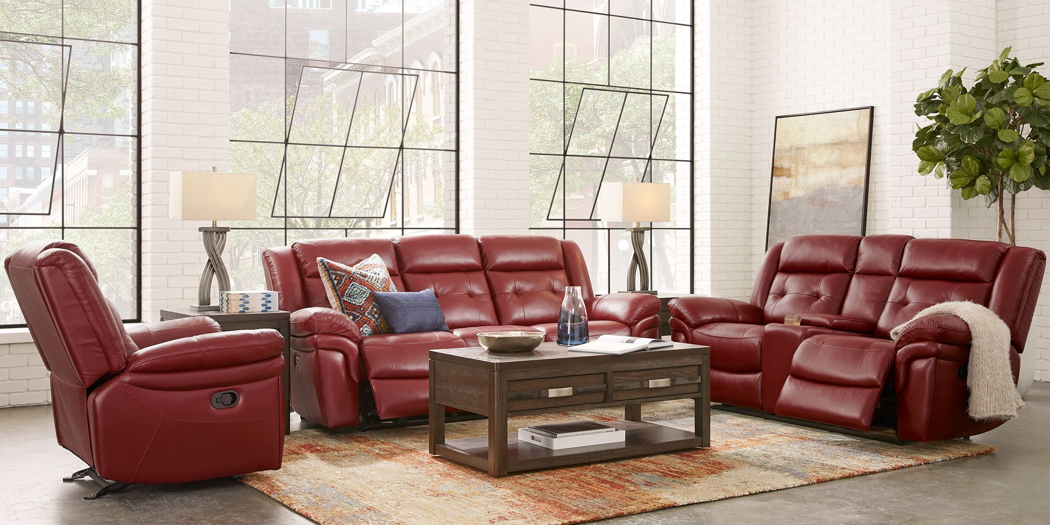 Ventoso Red Leather 5 Pc Reclining Living Room